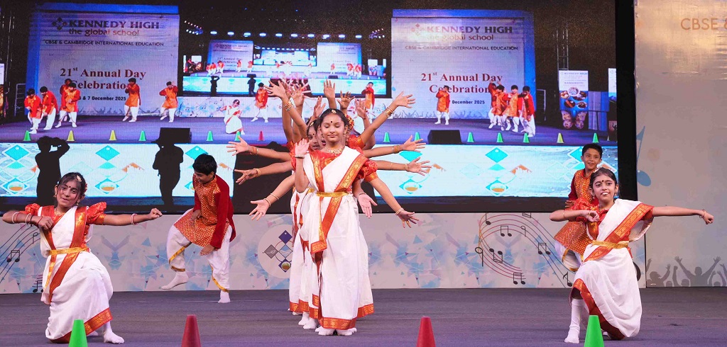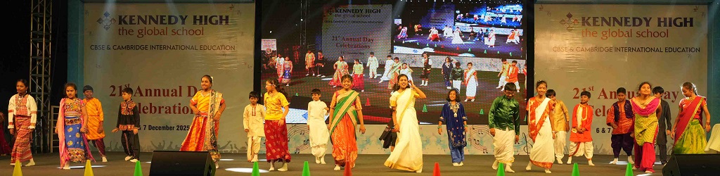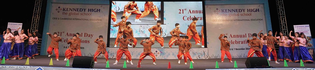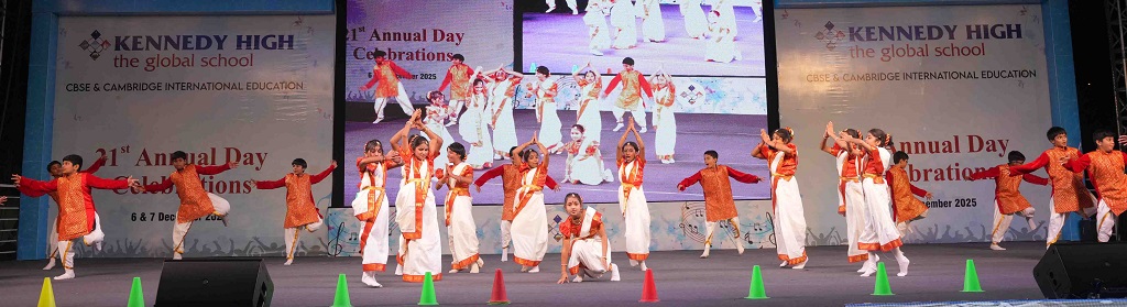On 7 December, 2025 the students of KENNEDY HIGH the global school celebrated the 21st Annual Day with enthusiasm and zeal. The students of Pre-primary I && II along with the students of Classes I-III, CBSE and grades 1-3, Cambridge, participated whole heartedly in this grand event.
