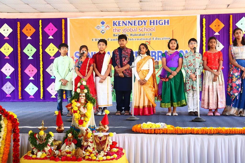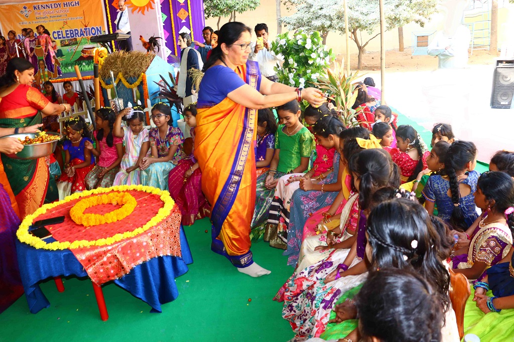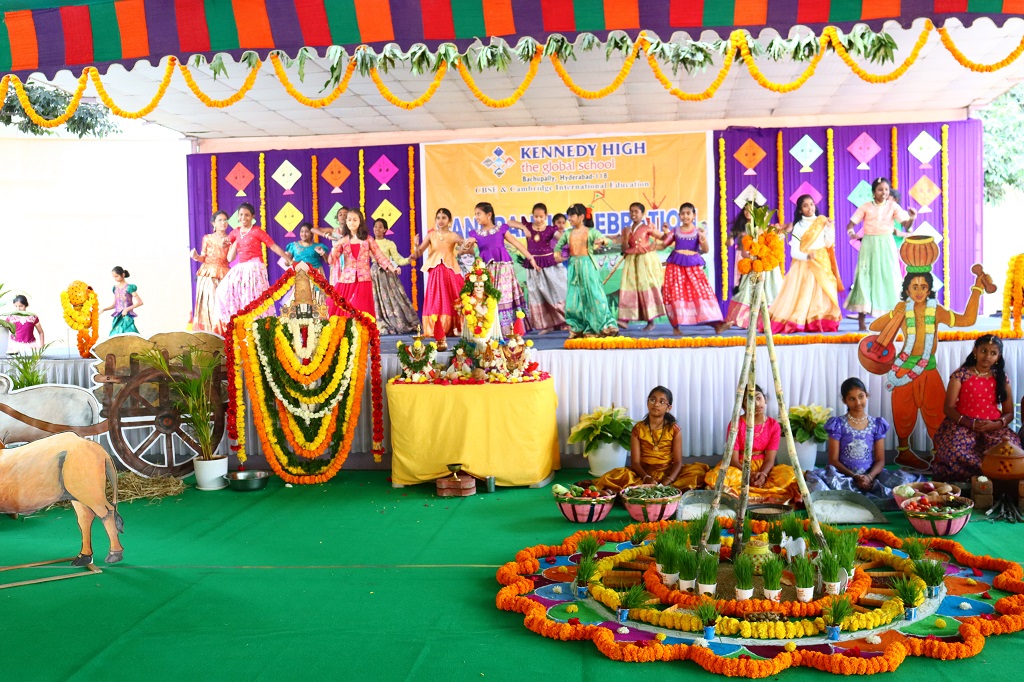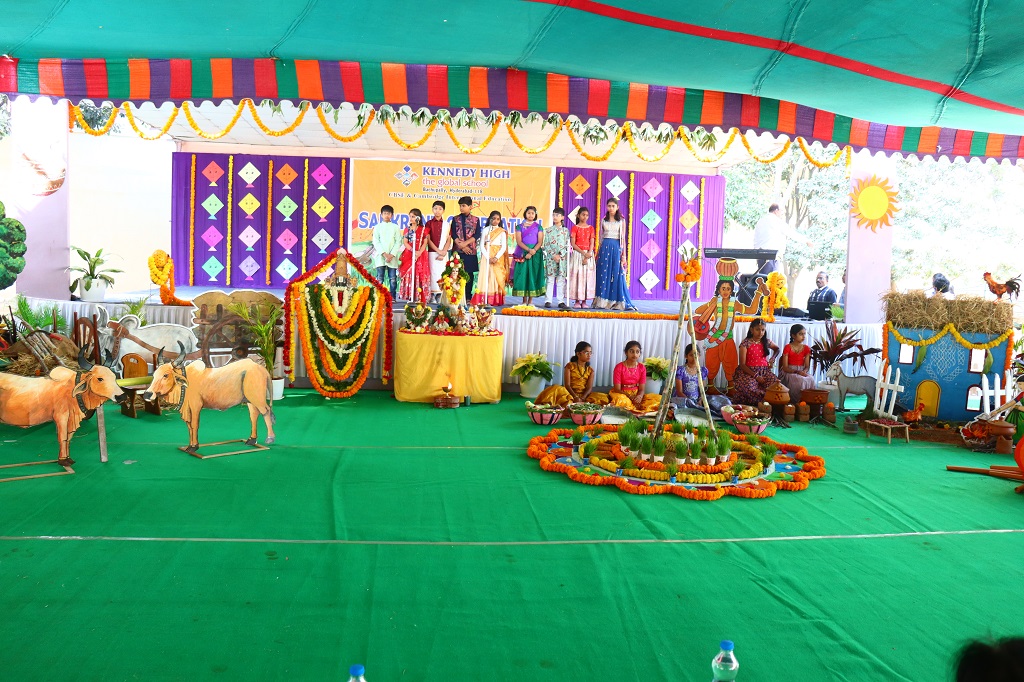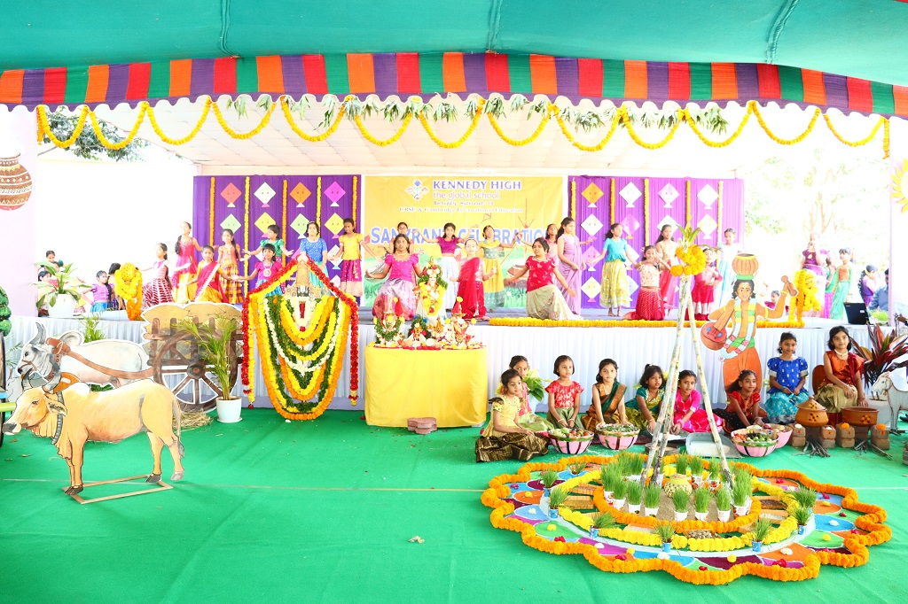 Sankranti at KENNEDY HIGH the global school was celebrated on Friday, 09 January 2026, transforming the campus into a lively rural landscape, beautifully reflecting the warmth, colour, and spirit of India’s rich cultural heritage. The entire school resonated with festive cheer as students & staff came together to celebrate the harvest festival in its most authentic form.